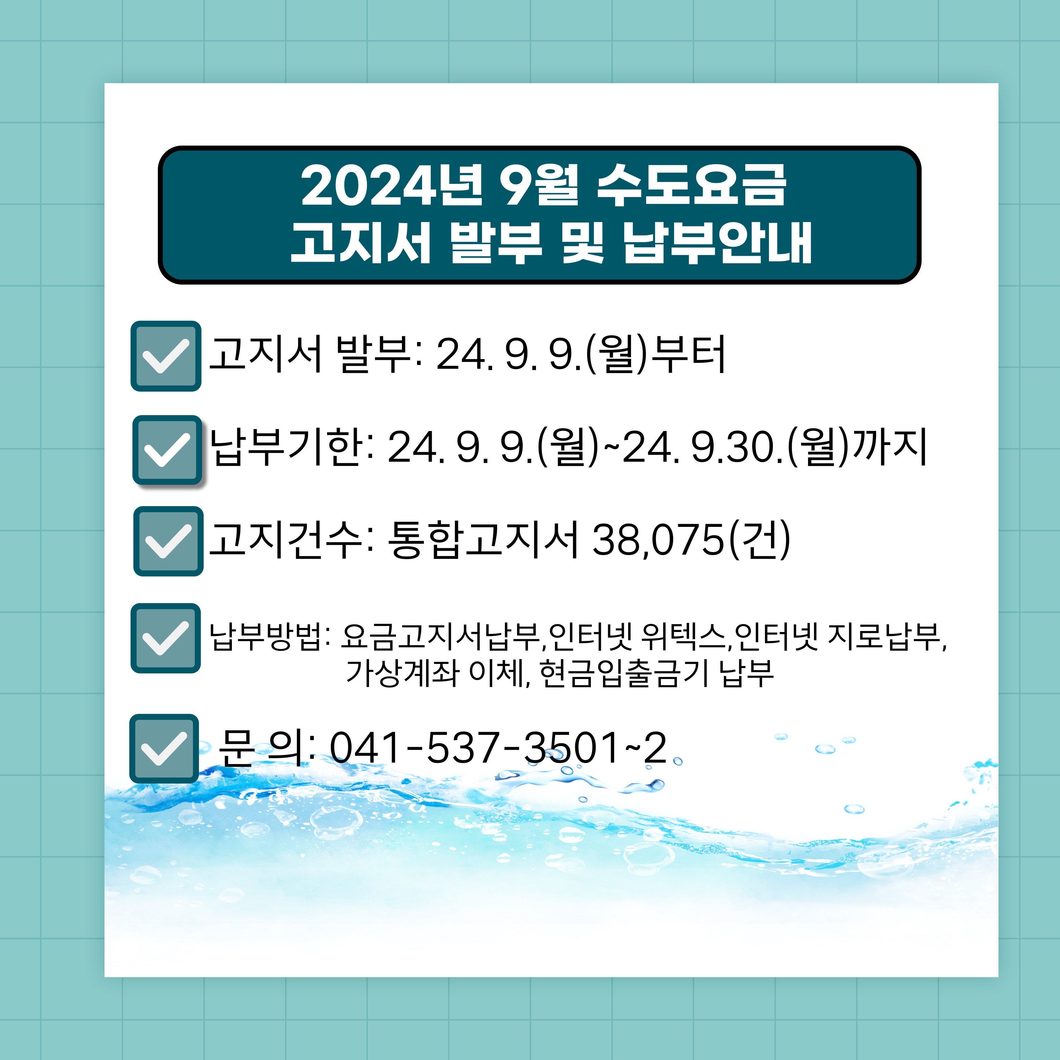 2024년 9월 수도요금 고지서 발부 및 납부 안내