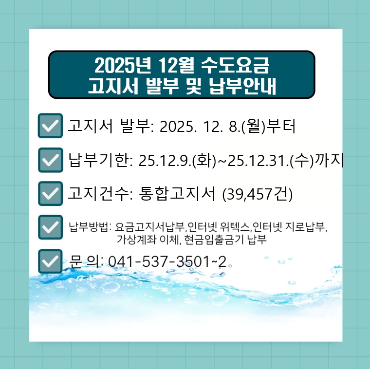 2025년 12월 수도요금 고지서 발부 및 납부 안내